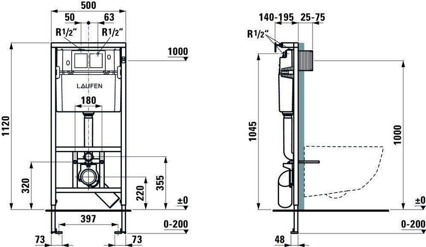 Инсталляционная система для подвесного унитаза, h1120х500х140мм, крепёж в компл, Laufen (LIS CW1) ZZ