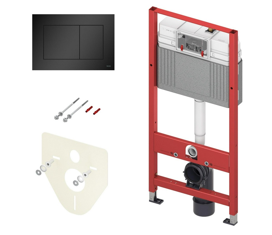 Комплект для установки подвесного унитаза, (застенный модуль, крепёж, прокладка звукоизол., панель 2-го смыва TECEnow пластик цв.ЧЁРНЫЙ ГЛЯНЕЦ),TECEZZ