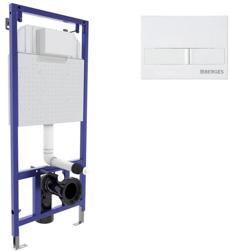 Инсталляция для подвесногоунитаза L1 с белой кнопкой смыва, ZZ Berges Novum 040211