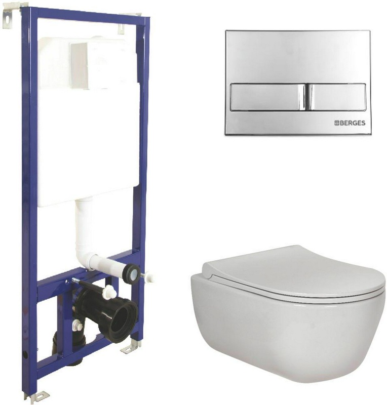 Комплект : инсталляция для подвес. унитаза + кнопка хром "L3" + подвес. безободковый унитаз с сиденьем микрл. ZZ