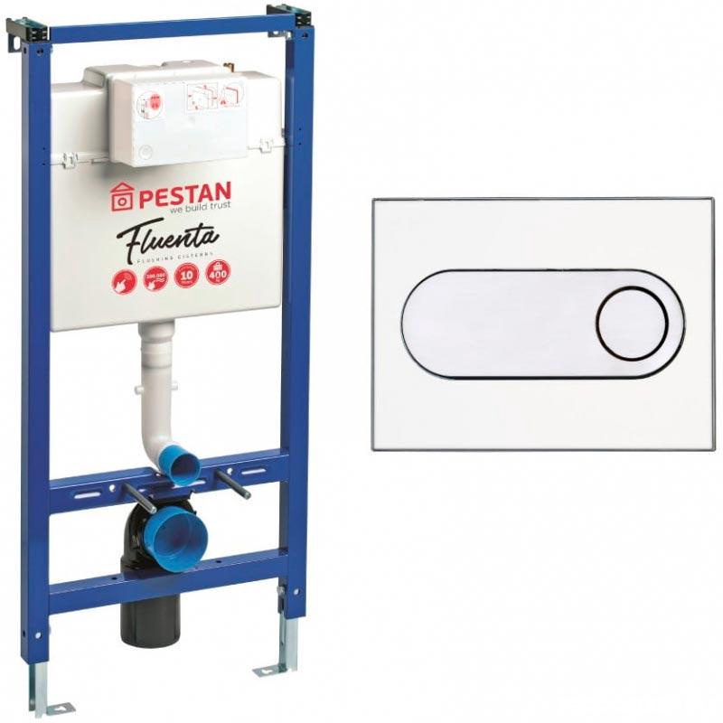 Комплект для установки подвесного унитаза, (застенный модуль, крепёж, панель 2-го смыва пластик Onyx, цв.БЕЛЫЙ), Pestan Fluenta ZZ
