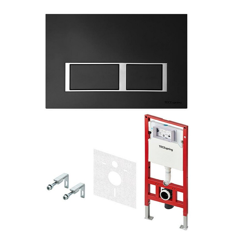 К-т д/установки подвесн.унитаза,(застен.модуль, крепёж, прокладка звукоиз,панель 2-го смыва пластик цв.ЧЕРНЫЙ мат.,контур клавиш хром),TECEspring V XX