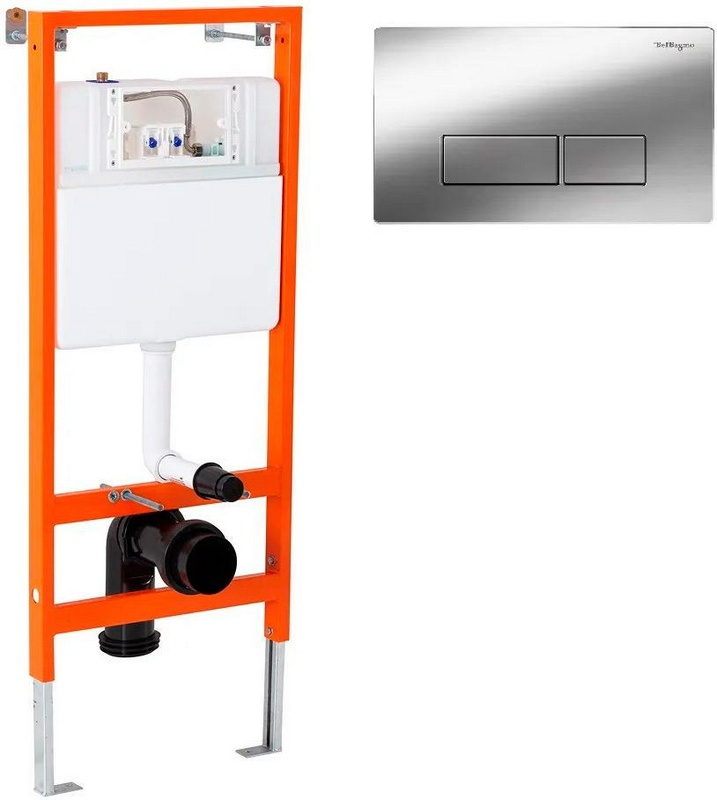 Инсталляция для подвесн. унитаза,1155х515х140мм, со смывным бачком, крепёж к стене, клавиша смыва с прямоуг. кнопками цв.хром в компл, BelBagno ZZ