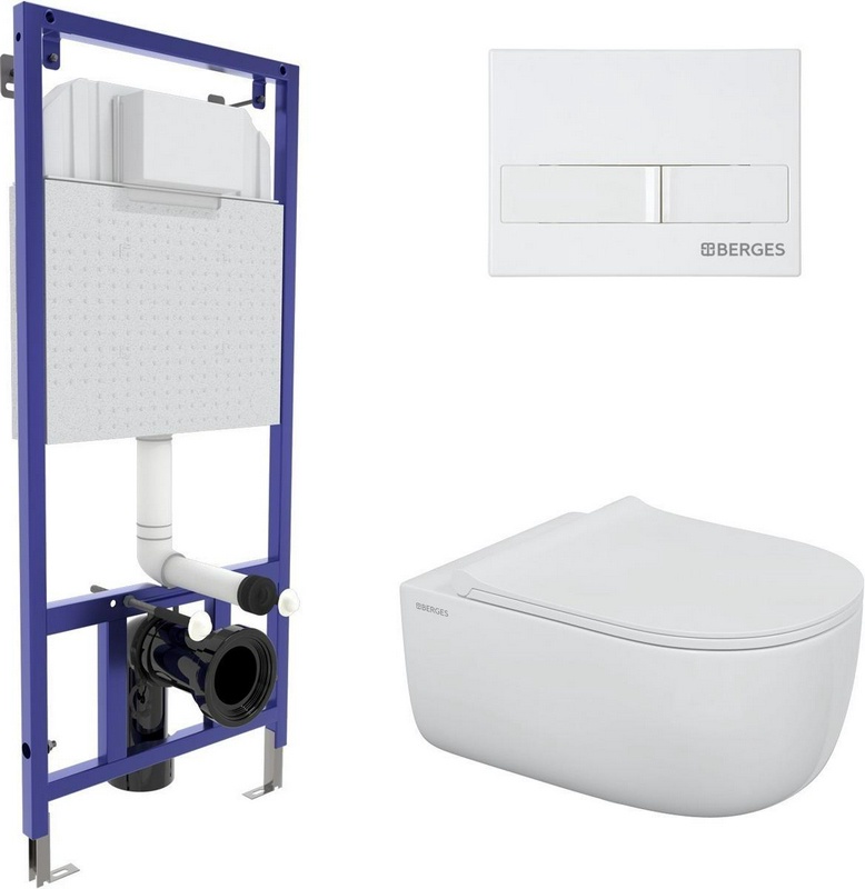 Сет инсталляция NOVUM525, кнопка L1 белая, унитаз EGO XL Rimless, сиденье дюропласт Okus Slim SO, микролифт, ZZ Berges Универсал 043323