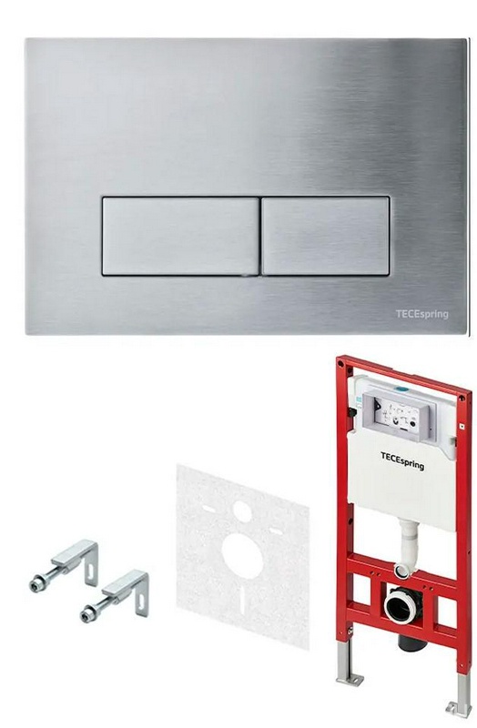 К-т д/установки подвесного унитаза, (застенный модуль, крепёж, прокладка звукоиз, панель 2-го смыва прямоуг.клавиши нерж.сталь сатин), TECEspring S