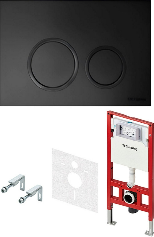 Комплект для установки подвесного унитаза, (застен.модуль, крепёж, прокладка звукоиз, панель 2-го смыва пластик цв.ЧЕРНЫЙ матовый), R Tece TECEspring S955104