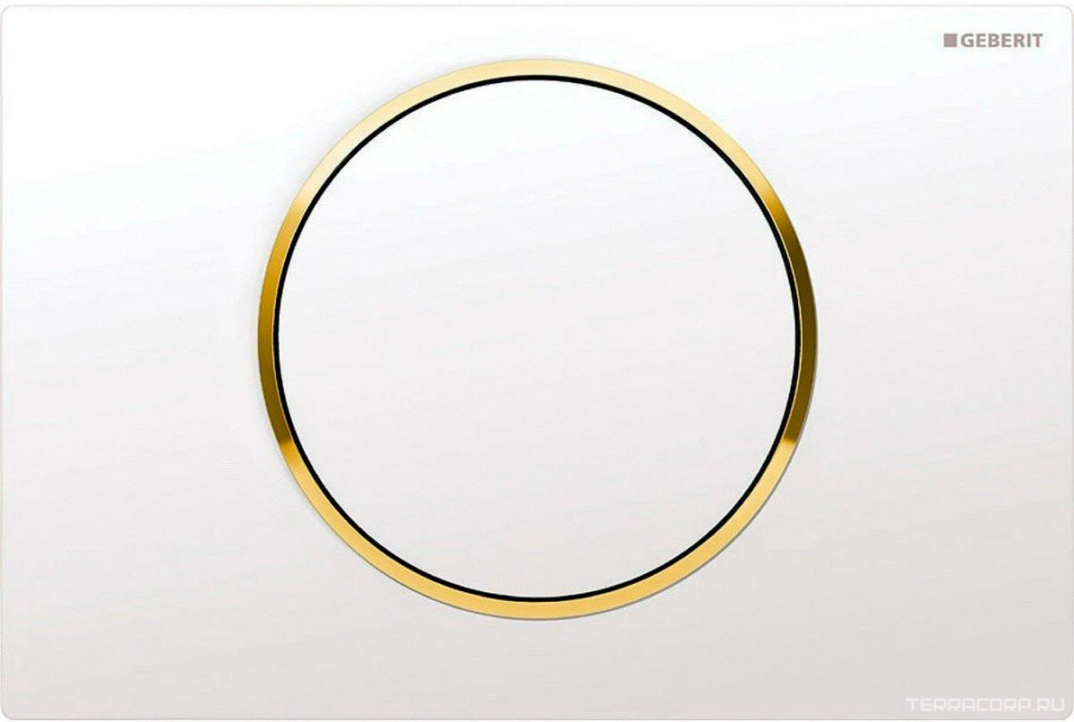 Клавиша одинарного смыва, смыв/стоп, (панель и клавиша цв.белый, кольцо позолота, пластик), Sigma10 ZZ