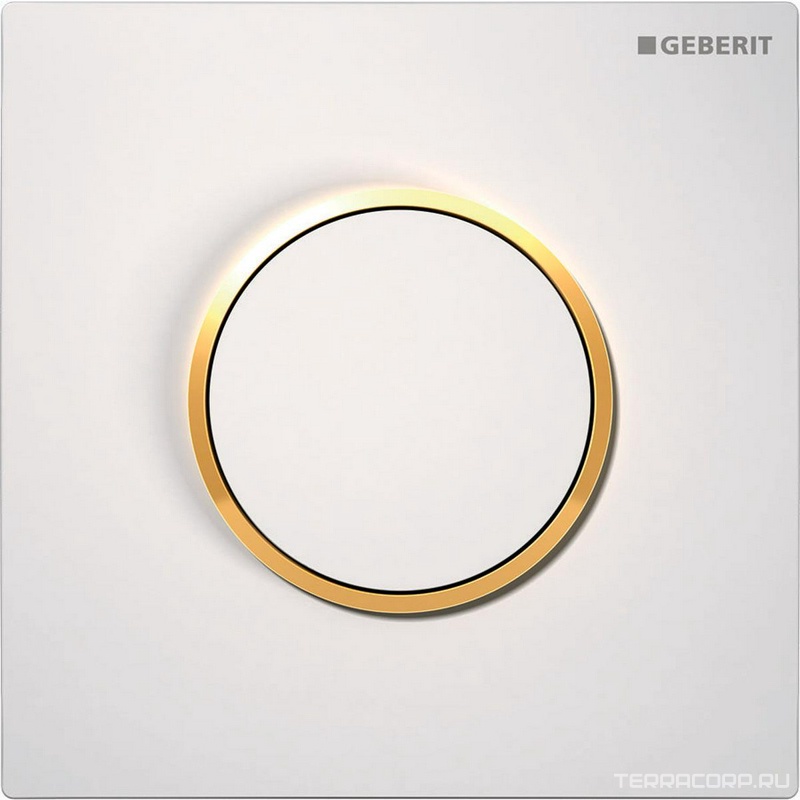 Клавиша смыва монтажного элемента для писсуара, (рамка белая., кольцо позолота, клавиша белая) пластик "" ZZ Geberit Sigma 10 116.015.KK.1