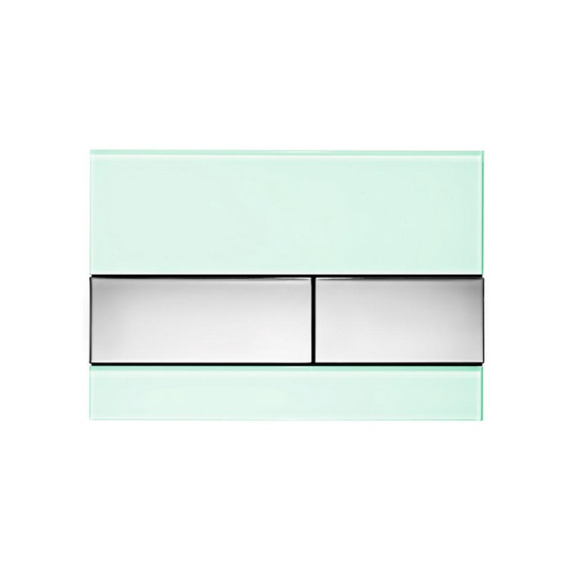 Панель смыва с двумя клавишами, для застенного модуля д/унит, д/горизонт/вертик.установки,(стекло зелёное, клавиши цв. нерж.сталь,сатин)TECEsquare ZZ