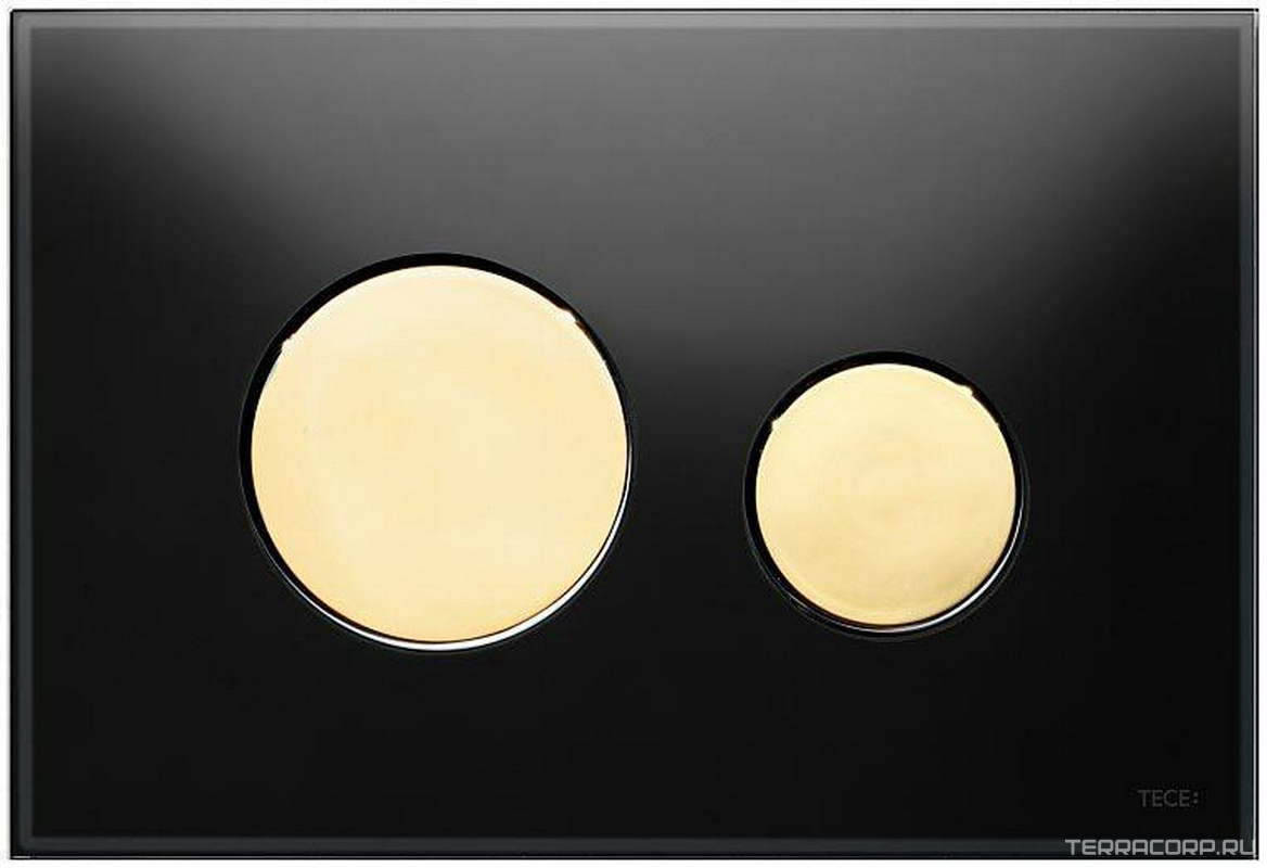 Панель смыва с двумя клавишами, для застенного модуля д/унит., д/горизонт/вертик. установки, (стекло чёрное, клавиши цв. позолота), TECEloop ZZ
