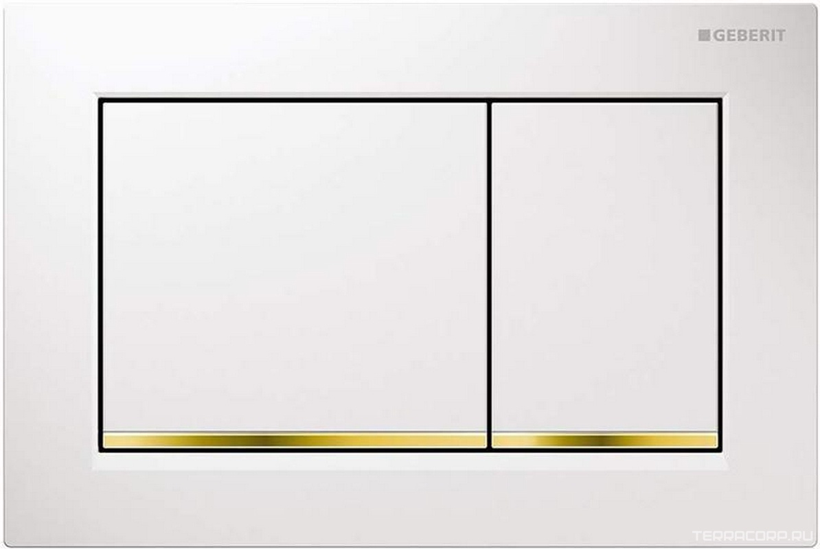 Клавиша смыва "Omega 30" для инсталляции арт.111.060.00.1, рамка белая, декоративная планка позолоченная, кнопки белые ZZ