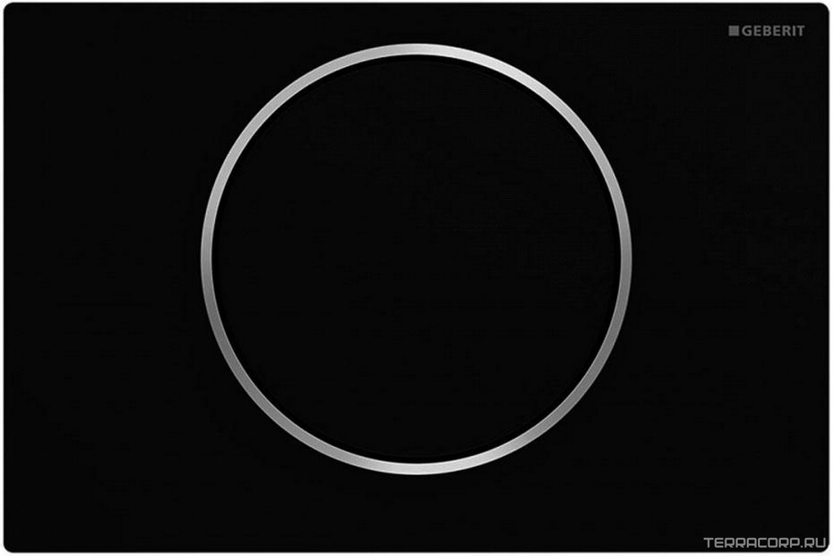 Клавиша одинарного смыва, смыв/стоп, (панель и клавиша цв.чёрный матовый лак, кольцо полированное, нерж.сталь), Sigma10 ZZ