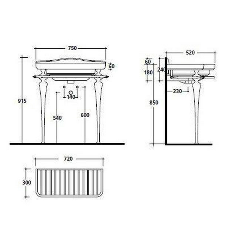 Структура подвесная для раковины 75см, с полотенцедержателем и полкой-решёткой (металл цв. хром), крепёж в компл., Ethos XX