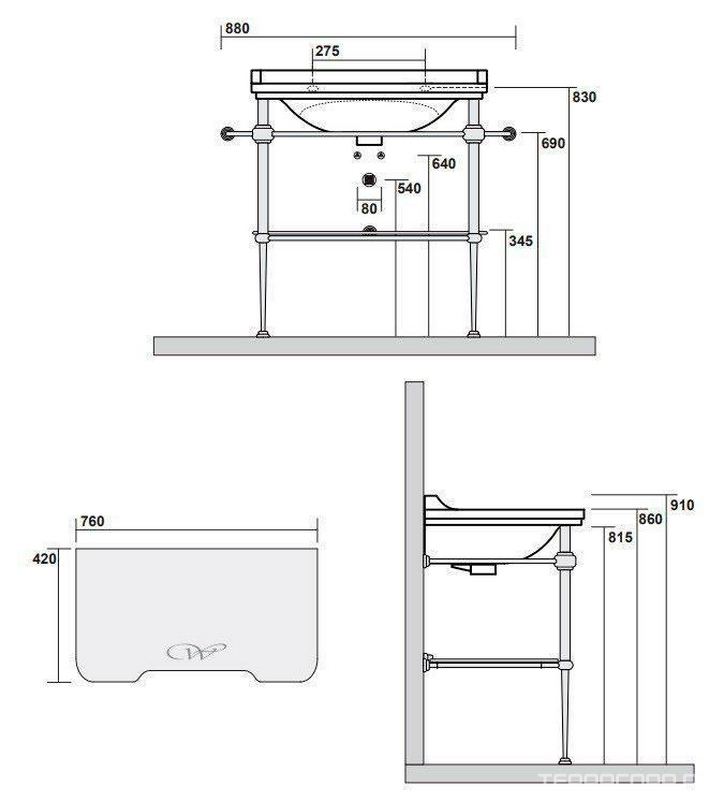 Структура металлическая, для установки под раковину 80см. арт.4141 хх, стекл. полка, крепёж в компл., (цв.золото), Waldorf ZZ