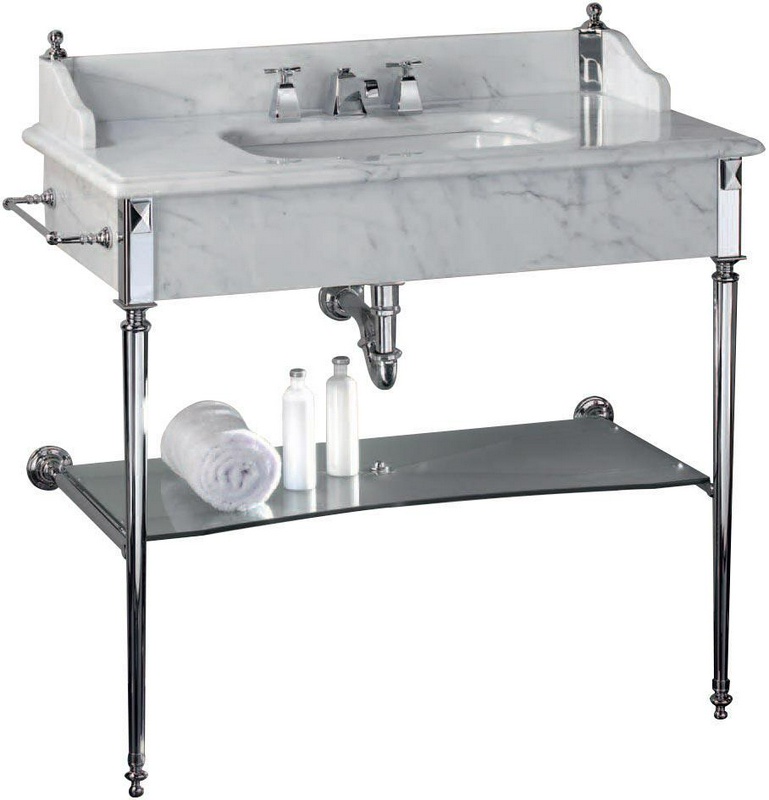 Консоль металл. 995хh570хh890мм,столеш.мрам.Bianco Carrara,1 отв.д/см, 1 п-держ. SX слева в комп, БЕЗ раков.White 56, (хром), Madison ZZ
