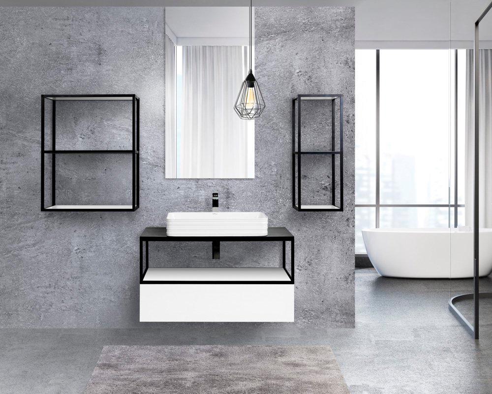 Одноярусный подвесной стальной сварной каркас под раковину, 100х46х30см, (цв.Nero), Cadro ZZ