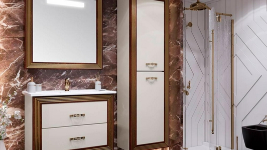 Пенал Карат подвесной 500*312*1786 мм, универсальный, цвет слоновая кость/золотая патина, крепеж в комплекте XX