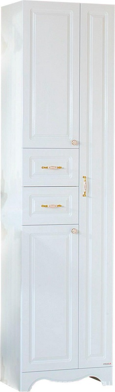 Шкаф-пенал напольный 45х28хh196см, одна створка, два ящика, петли справа (цв. Bianco Laccato brillante,фурнит.цв.золото) Mobili ZZ