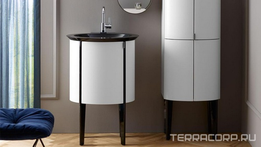 Тумба овал.черная h850х585x1200мм изог/нож. CR,бел.рак.3отв.д/смес.,ручкаG0023(WUAB110 F0004 K0004+MWAB110 F0004 K0004+ZUAA021F0004 K0004 B0001)ZZ