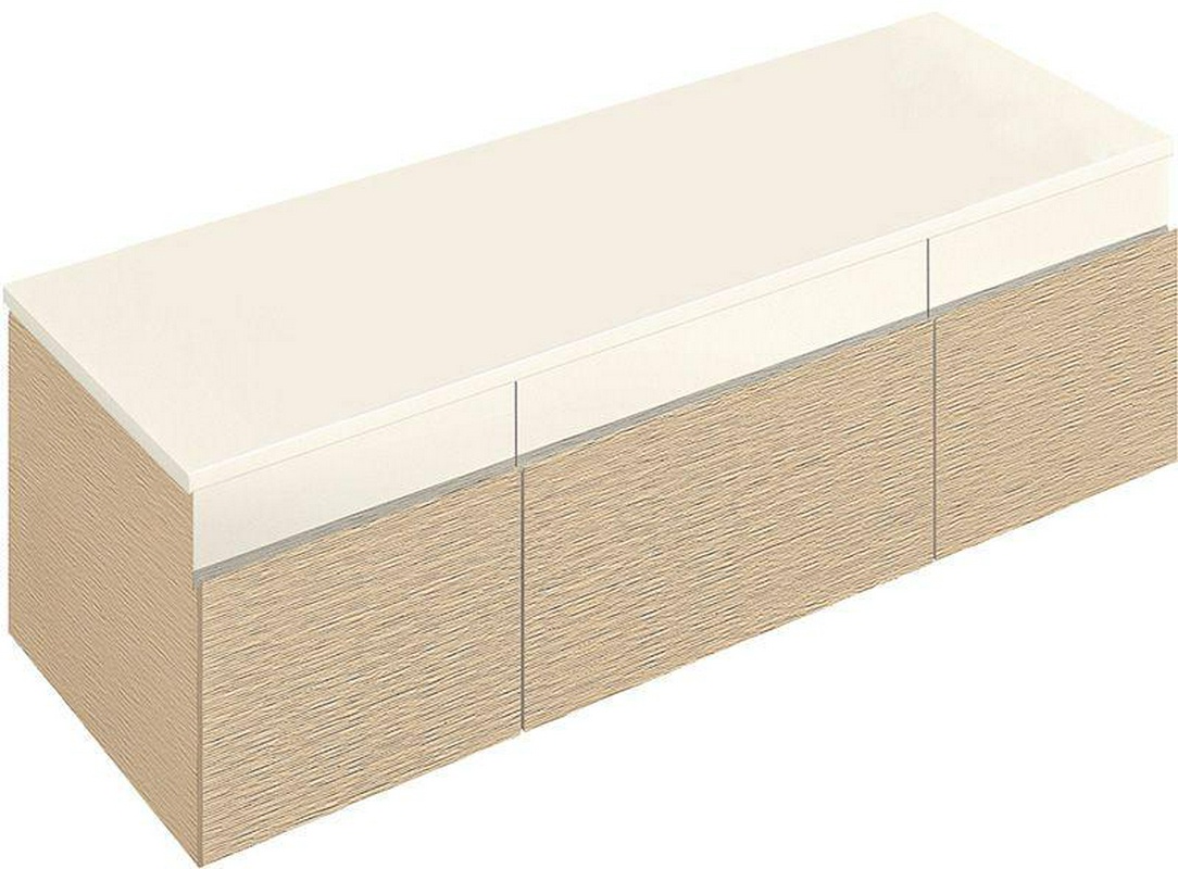 Тумба подвесн. 1405хh425х535мм, 3-х дверн, свет.дуб/стекло крем., устан.с раков.(5133) по центру 1000,800,600,500мм по центр, креп. в комп.,Memento XX