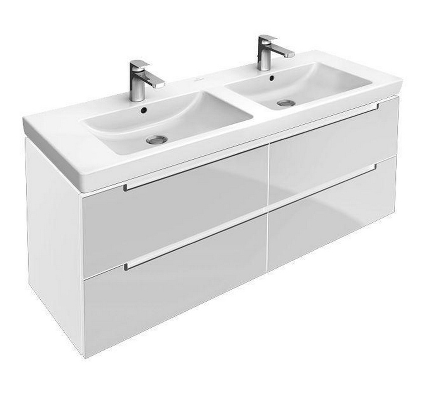 Тумба 1287хh520х449мм, д/двойной раковины 1300мм, 4 выдвижн. отделения, крепеж в компл., (цв.DH Glossy White, ручка цв.серебро матов.), Subway 2.0 ZZ
