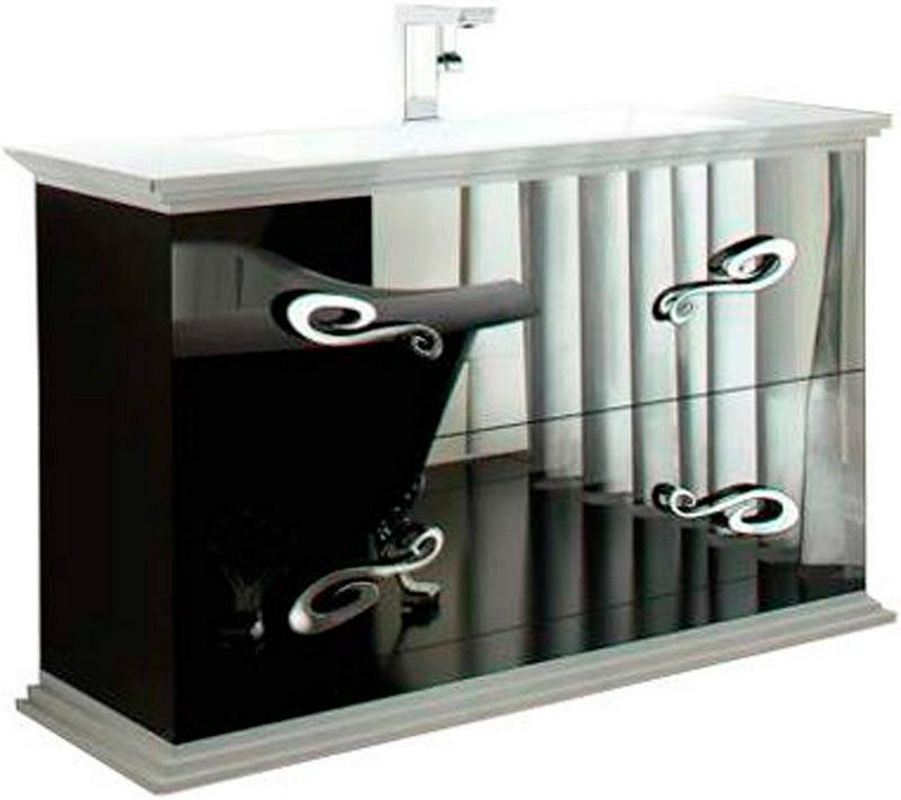 Тумба 120х45см, напольная, под раковину, с 2-мя выдв. ящиками, со стеклянной столешницей, (корпус цв. Черный, ножки 2шт., ручка цв. золото), Savoie ZZ