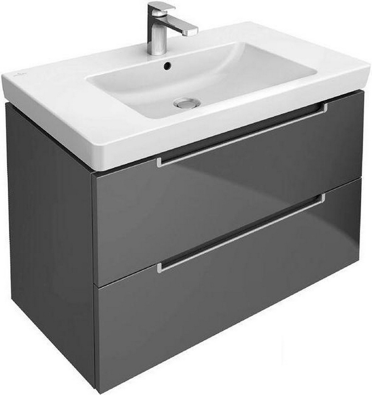 Тумба подвесная в комплекте с раковиной, 800хh622х480мм, 1 выдв.ящик, (цв. лава матовый), крепёж в компл., Renova Plan ZZ