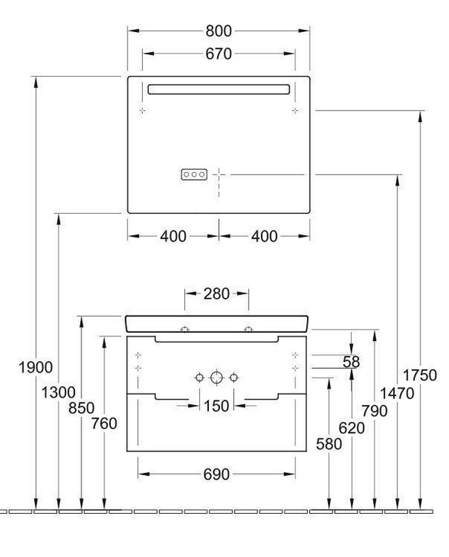 Тумба подвесная в комплекте с раковиной, 800хh622х480мм, 1 выдв.ящик, (цв. лава матовый), крепёж в компл., Renova Plan ZZ