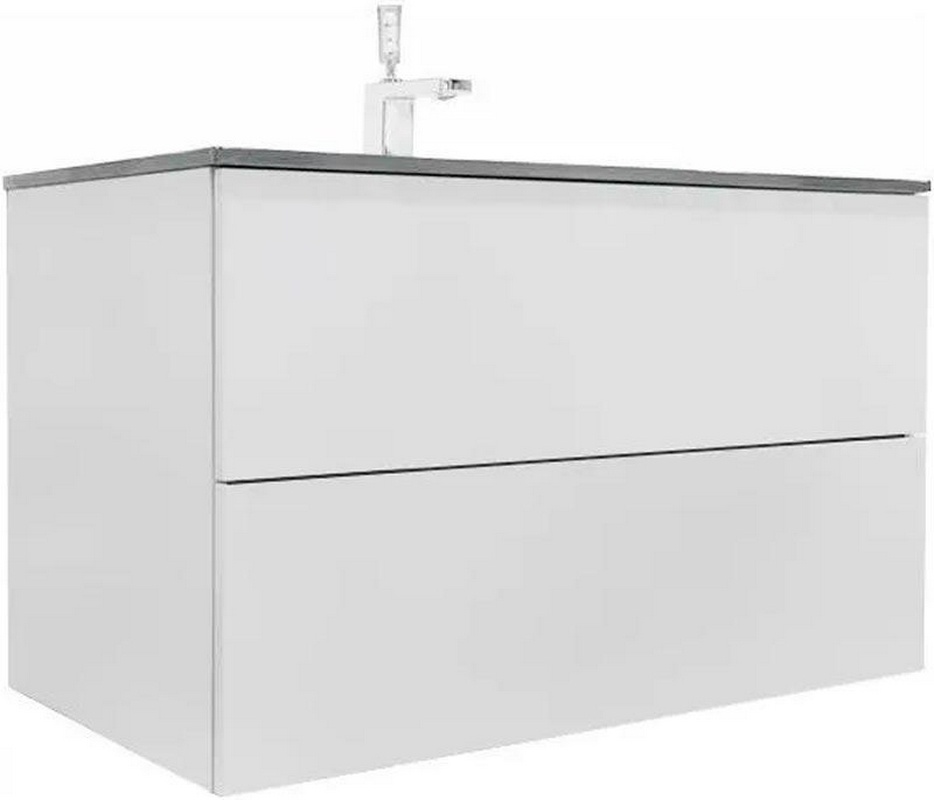 Тумба подвесная 90 см, 2 выдвижных ящика push to open, без раковины, цвет белый матовый/белый глянец