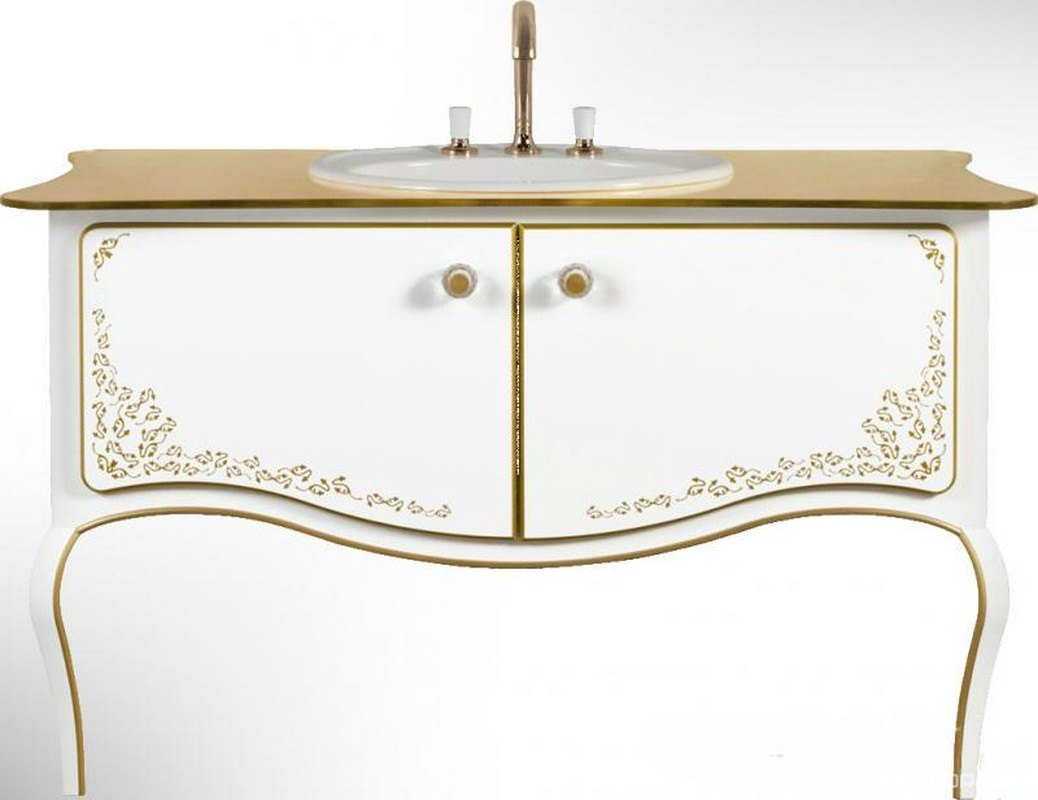 Тумба 1430хh850х670мм со столеш., д/встр.рак. 6198 хх, 2 двер, цвет Brilliant White, ручки муран/стек, 2 конт д/акс., (креп.в ком.), Amad Royal XX