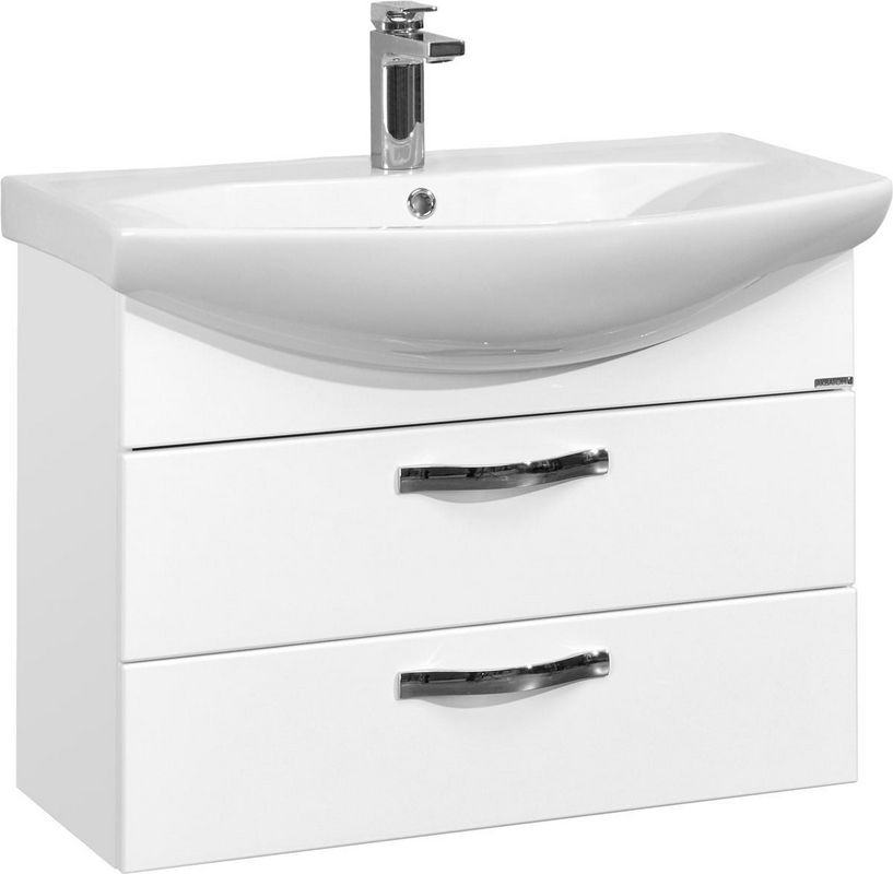 Тумба подвесная Ария 80М 760*542*309 мм, цвет белый глянец, без раковины Смайл 80, крепеж в комплекте ZZ