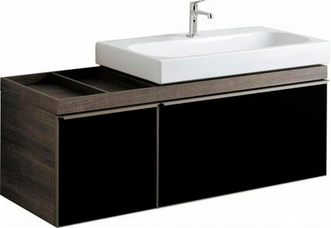 Тумба 1334хh554х504мм,полочка слева, 2 выдв. ящика,1 внутр ящик, д/уст.с рак.арт.123695;123590,(цв. тёмн дуб, стекл.фронт пан чёрн цв.),креп/компл ZZ Geberit Citterio 500.568.JJ.1