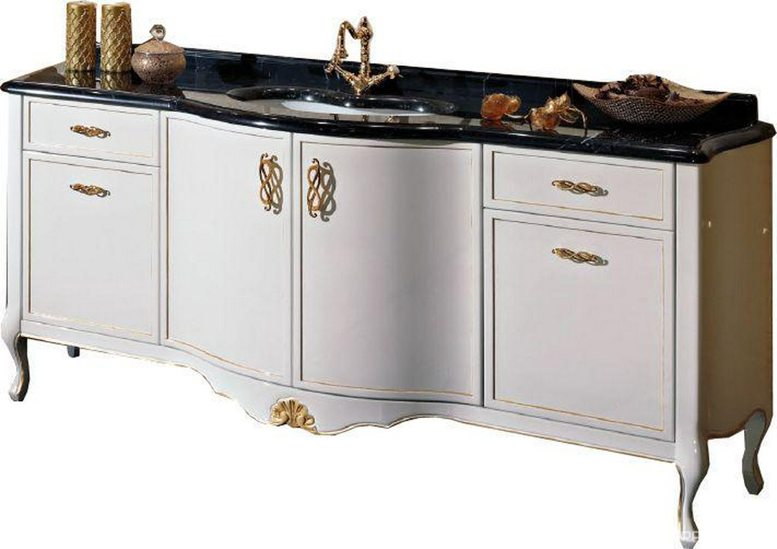 Тумба 80хh70х56см,под раков,с 2-мя дверц.,(цв.бел.лак перлам.,сус.зол.,ручки цв.зол.),без столешн. и концев.боковин,(раков. в комп),Gold Componible XX