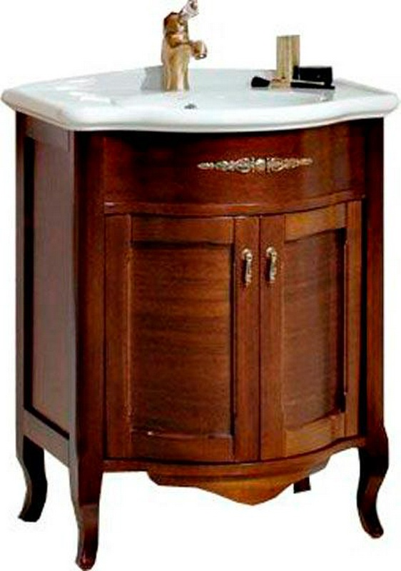 Шкаф под раковину 685хh750х540мм, 2 двери, (цв.орех, ручки-керамика цв.01 white), Hommage ZZ