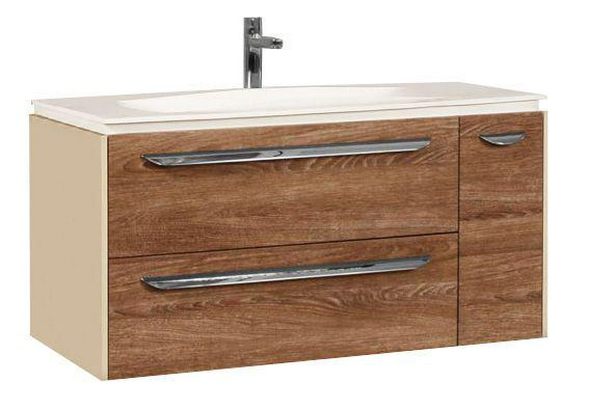Тумба подвесная Блент 2Б 100 1000*490*448 мм, БЕЗ раковины Блент Д 1000, цвет кремовый/дуб европейский ZZ