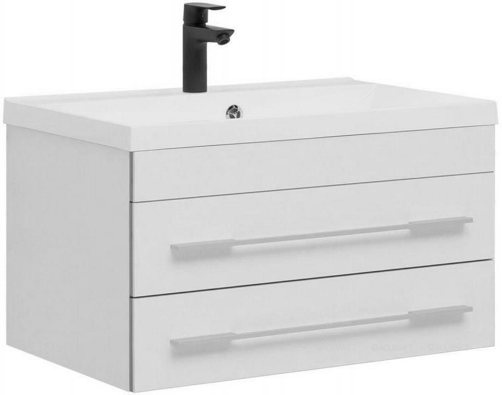 Тумба подвесная 80 см, без раковины, 2 выдвижных ящика, цвет белый