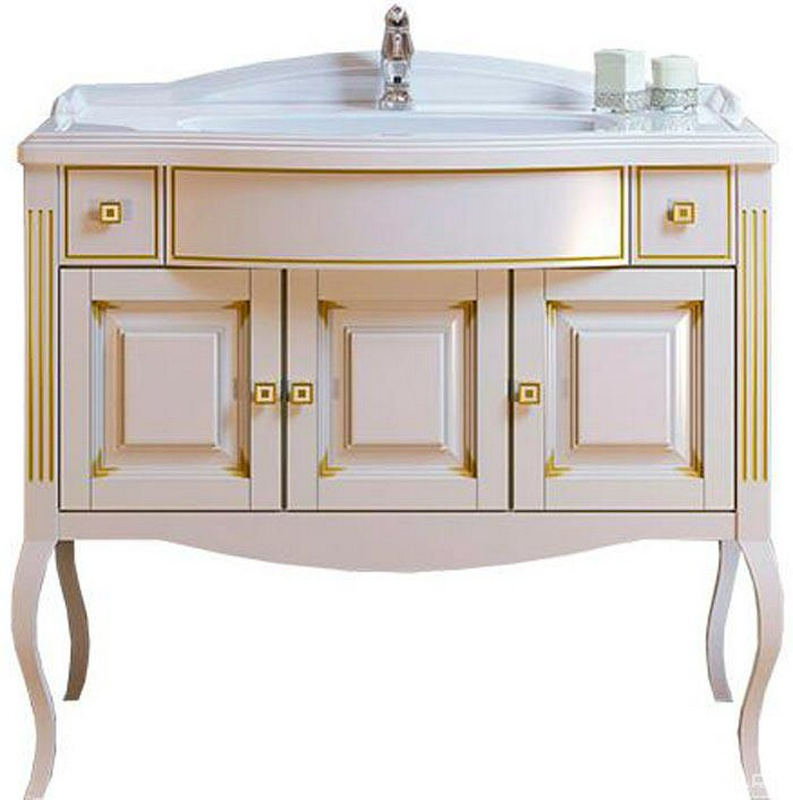 Тумба напольная Лаура 100, 1000*930*540 мм, БЕЗ раковины Лаура или раков.ном. 12882, мраморной плиты, цвет белый с золотой патин.ZZ