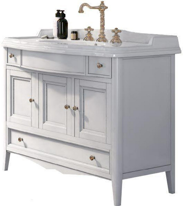 Тумба 97х54,2хh81см, 3 расп.двери, петли Blum, 3 выдв.ящика, раковина 105см, 1 отв.д/смес.в компл.(дерево бук, цв.bianco, ручки Riflesso цв.бронза в к TW Collection Veronica VER6105-B+AR874