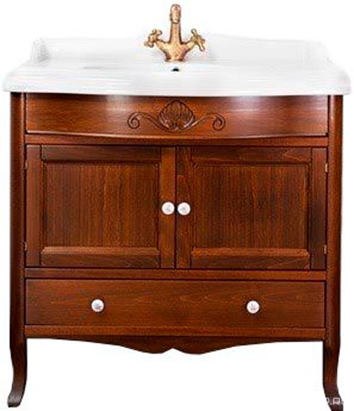 Тумба 84х53,9хh81см, 2 расп.двери, петли Blum, 1 выдв.ящик, раковина 90см, 1 отв.д/смес.в компл.(дерево бук, цв.noce, ручки Riflesso цв.бронза в компл