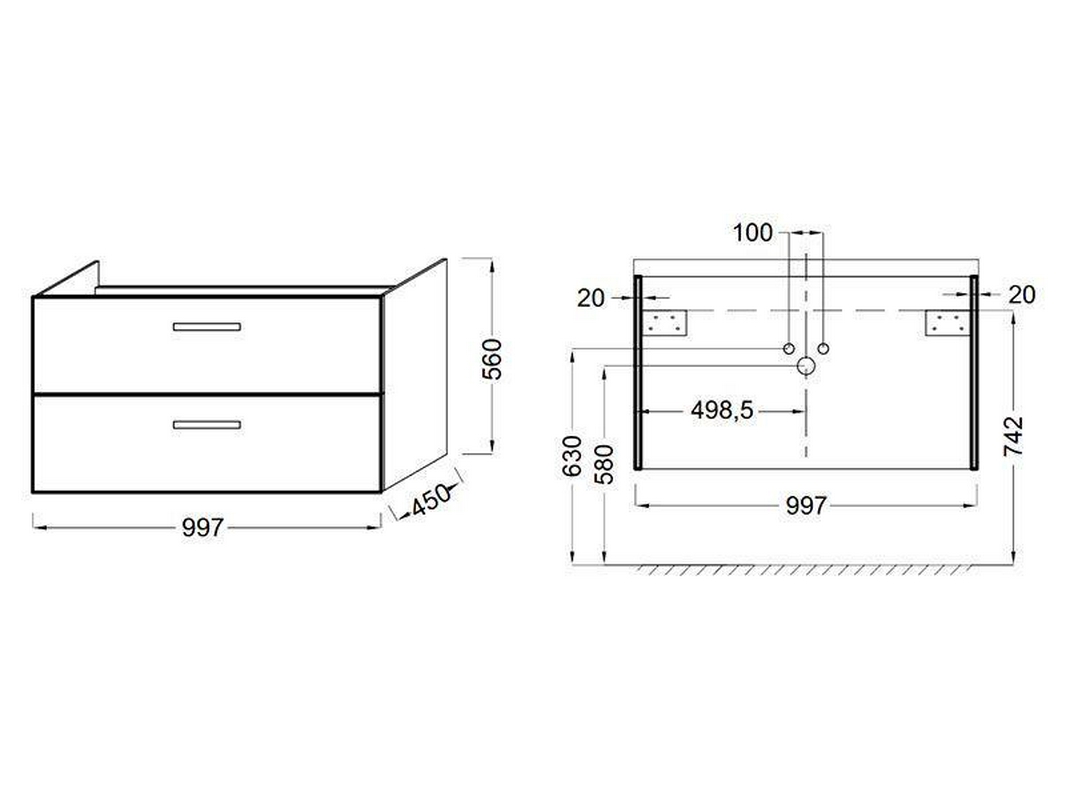 Тумба подвесная 100,7x46x56 см, 2 выдвижных ящика, БЕЗ умывальника EXU112-00 , цв.белый лак XX