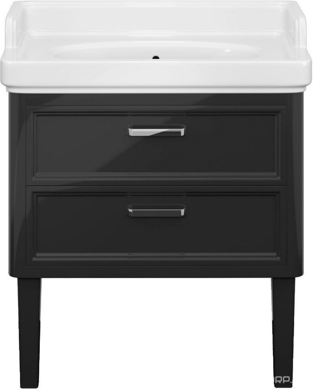 Тумба напольная "Pompei" 80см, 2 ящика, БЕЗ раковины, цв.черный глянец XX