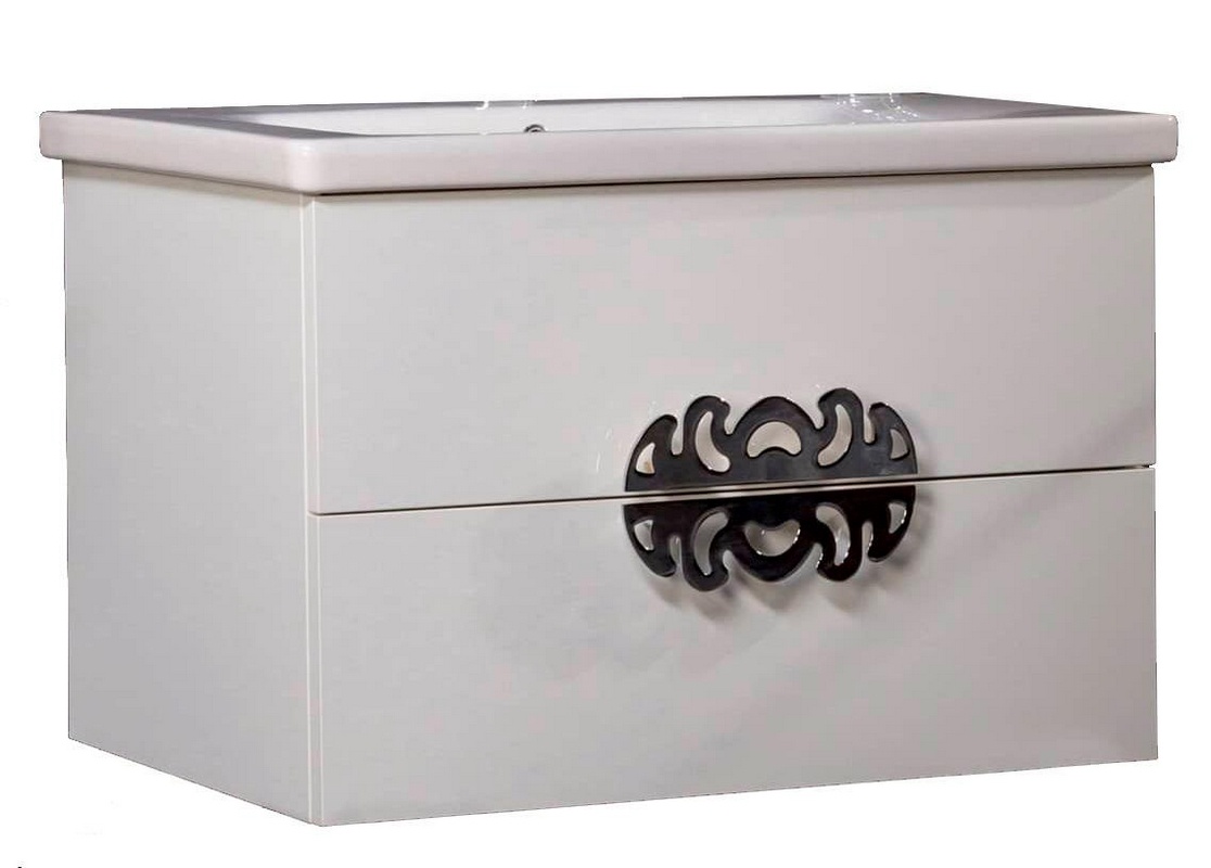 Тумба подвесная Карат 80, 800*595*450 мм, цвет белый/серебряная патина, БЕЗ раковины n126394 Кападокия 80 (ст.рак.Прима 80), крепеж в комплекте ZZ