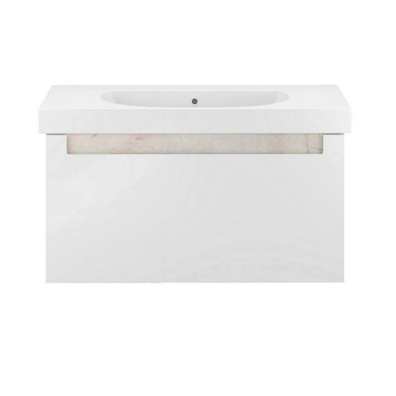 Тумба подвесная "BUONGIORNO" 100 см, с 1 выдвижным ящиком + 1 внутренний ящик, БЕЗ раковины, цв.белый/полоска св.дуб XX