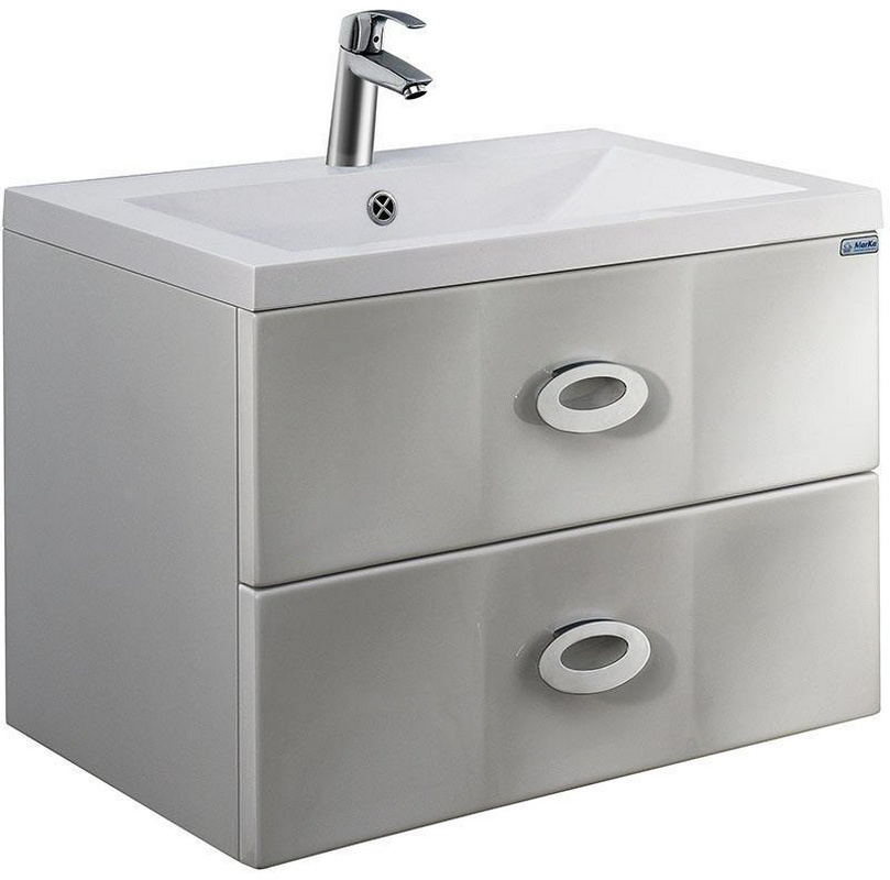 Тумба подвесная ""-75 см, цвет белый, 2 ящика, раковина и крепеж в комплекте 1Marka Carre Carre / white