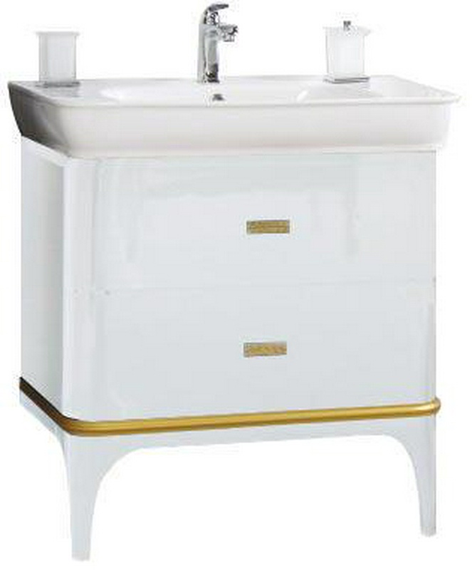 База под раковину 800x480x850мм напольная с двумя выкатными ящиками, цв.белый глянец, ручки цв.золото, Prado ZZ