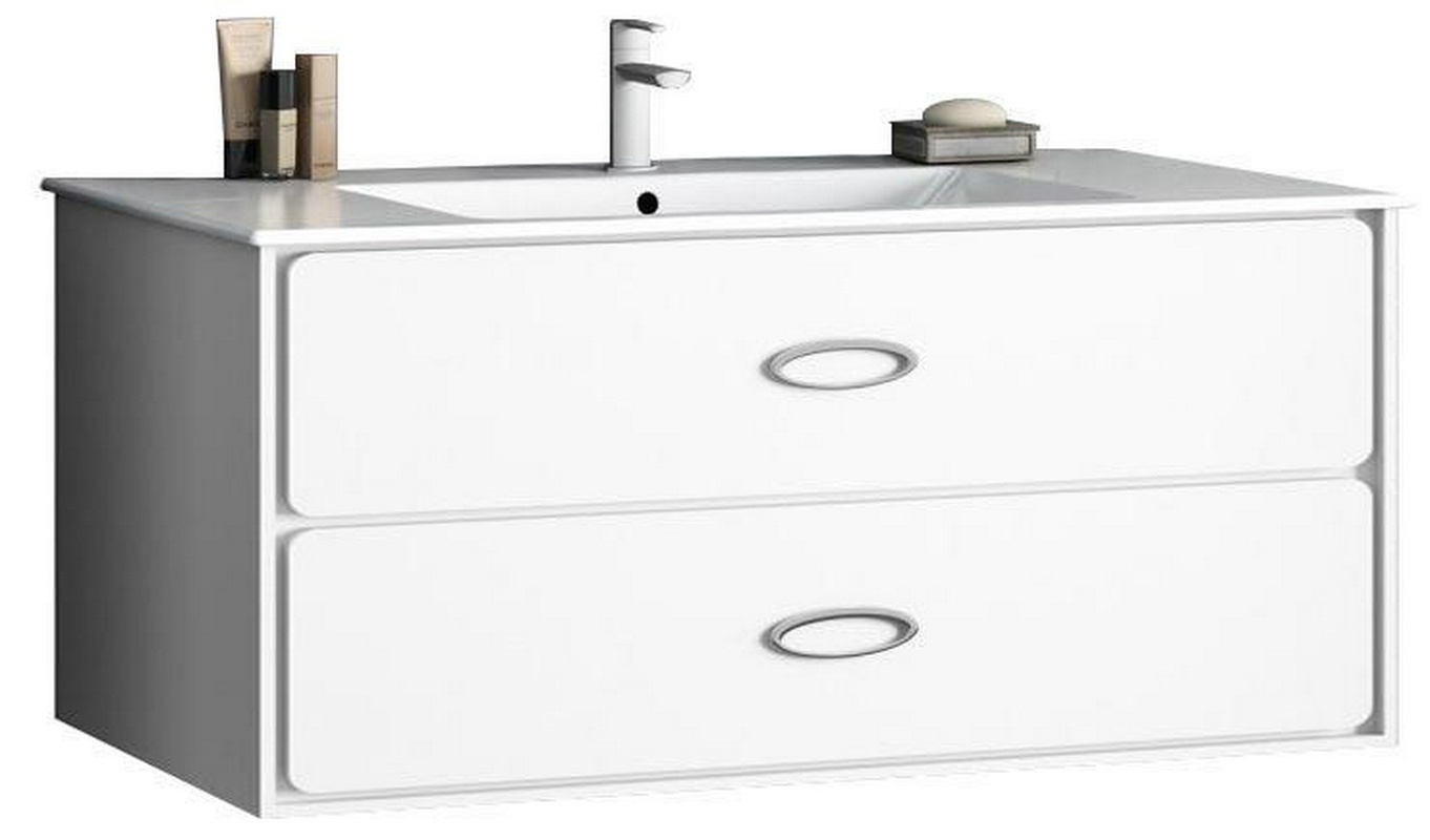 Тумба подвесная 100 см, 2 ящика, без раковины арт.254365 , цв.белый матовый