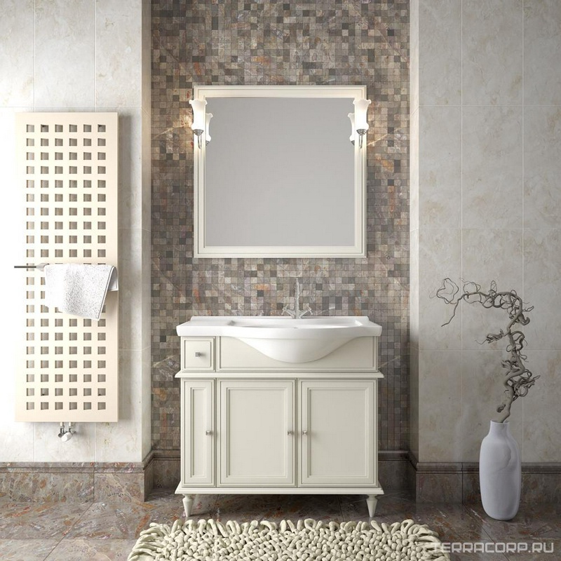 Тумба 97х54,2хh81см, 3 расп.двери, петли Blum, 1 выдв.ящик, раковина 105см, 1 отв.д/смес.в компл.(дерево бук, цв.grigio, ручки Riflesso цв.бронза в ко TW Collection Veronica VER4105-G+AR874