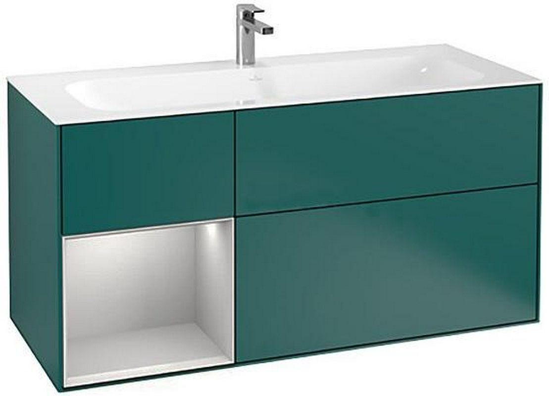 Тумба 1196хh591х498мм,д/р1200мм,(3 выд.отд,1 конт.д/акс,подсвет),(Shelf element цв.GJ Light Grey Matt Lacguer, фасад и корп.GS Cedar Matt Lac)FinionZZ