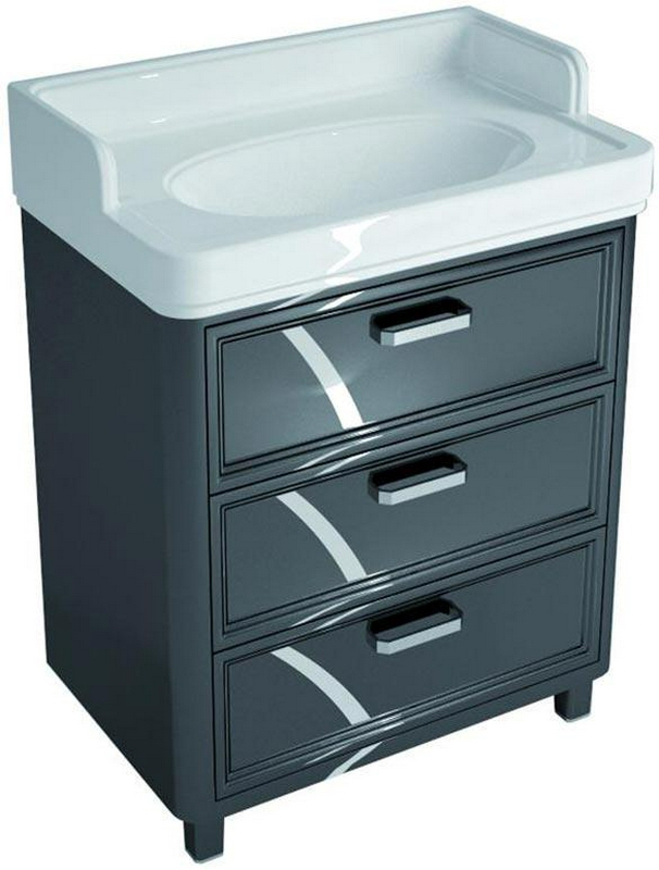 Тумба напольная "Pompei" 60см, 3 ящика, БЕЗ раковины, цв.черный глянец XX