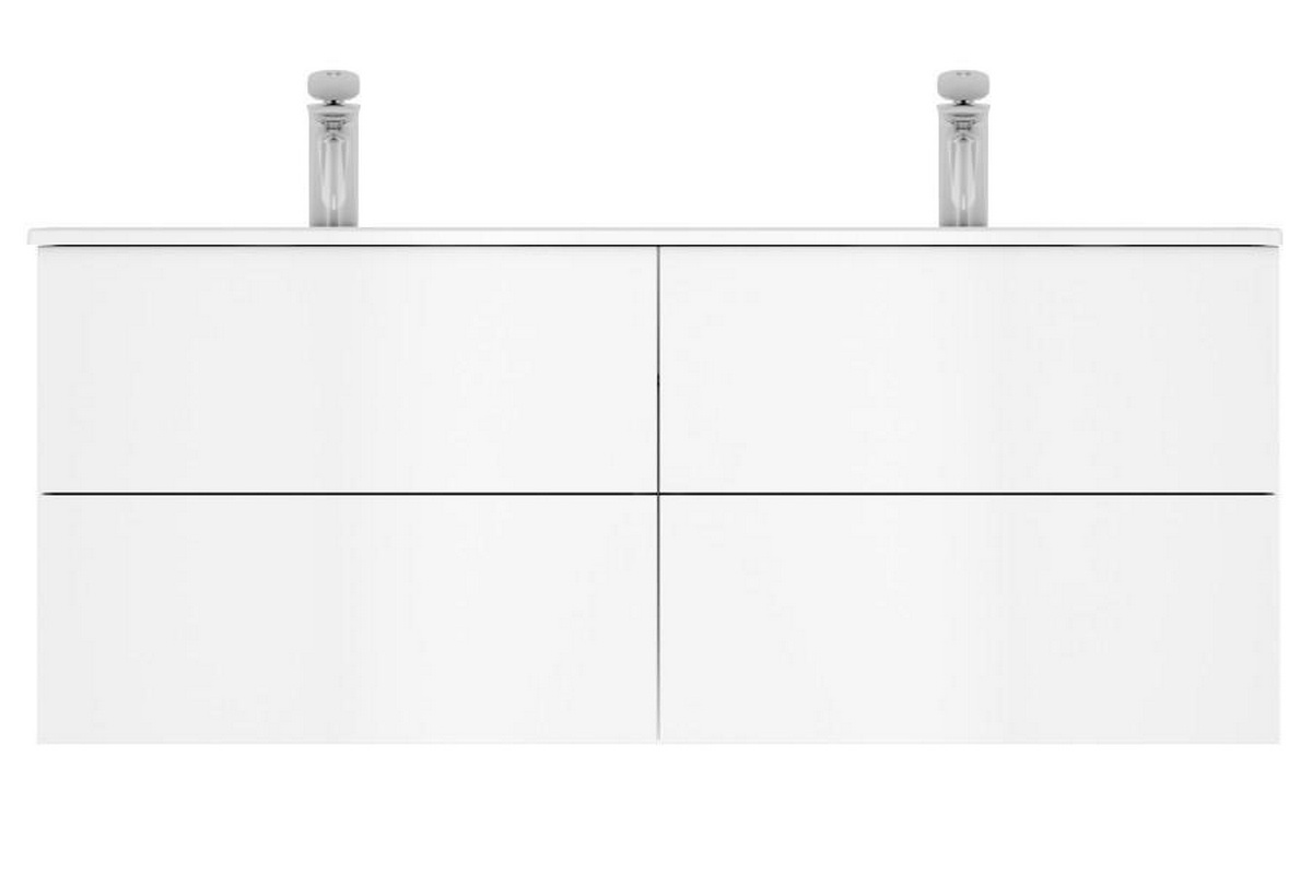 Тумба подвесная 140 см, 2 выдвижны ящика, БЕЗ раковины, цвет белый глянец ZZ